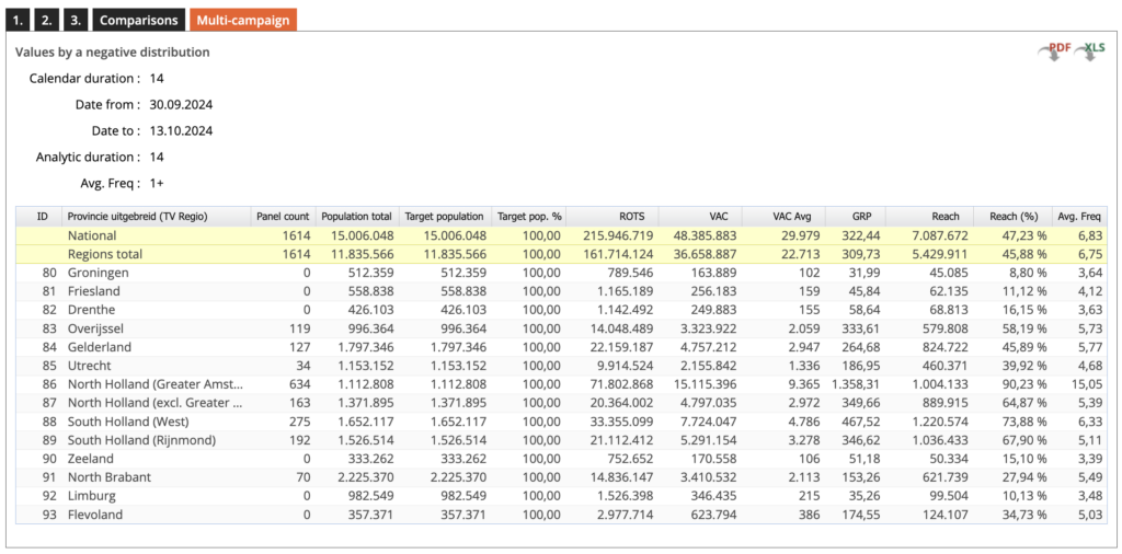 Als je nu op het tabblad ‘Multi-campaign’ klikt geeft IDS het totale resultaat van de drie campagnes samen als één campagne: